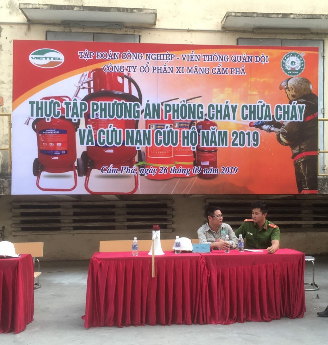 Công tác chuẩn bị các điều kiện cho buổi thực tập được lãnh đạo hai đơn vị (Công ty CP Xi măng Cẩm Phả và Phòng Cảnh sát PCCC & CNCH) đặc biệt quan tâm hướng dẫn, chỉ đạo. Lực lượng PCCC & CNCH được phân công cụ thể, chi tiết bao gồm 8 tổ (Tổ khói lửa, tổ y tế, tổ người bị nạn, tổ báo cháy, cắt điện, tổ hướng dẫn, cứu người bị nạn, tổ cứu tài sản, tổ chữa cháy, tổ bảo vệ). Quá trình tổ chức được thực hiện nghiêm túc, triển khai tập luyện theo đúng các yêu cầu phục vụ đã đề ra.