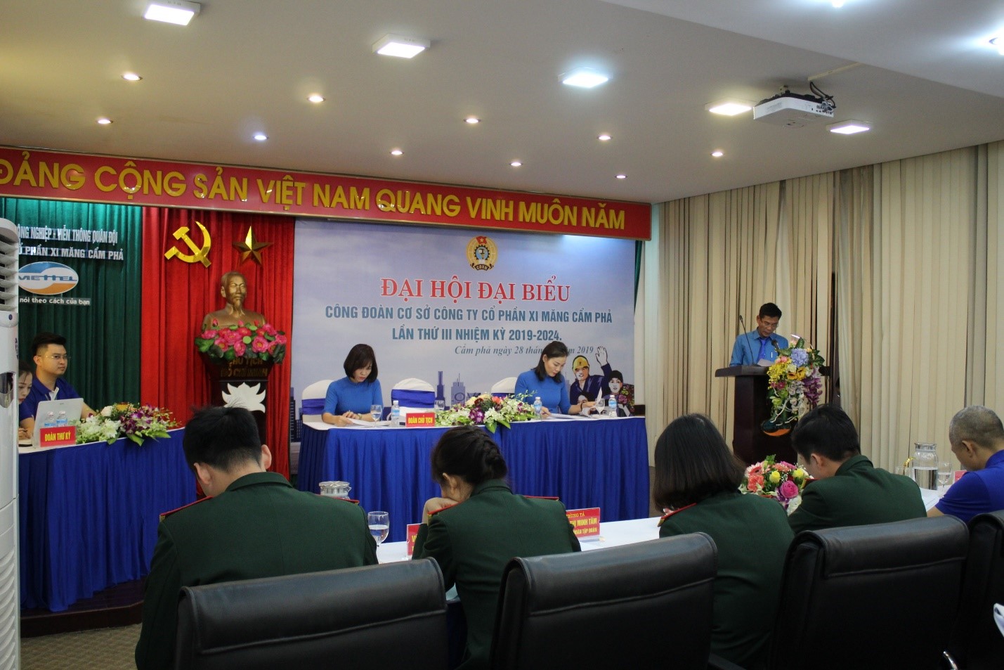 Với tinh thần “Trí tuệ, đổi mới và dân chủ” và phương châm “Đổi mới, sáng tạo vì quyền, lợi ích của người lao động, vì sự phát triển bền vững của Công ty”, nhằm kiểm điểm, đánh giá tình hình hoạt động nhiệm kỳ 2014 – 2019, đồng thời đề ra phương hướng nhiệm vụ nhiệm kỳ tới và bầu Ban chấp hành Công đoàn cơ sở nhiệm kỳ 2019 – 2024, sáng ngày 28/11/2019, Công đoàn cơ sở Công ty CP Xi măng Cẩm Phả đã tổ chức Đại hội đại biểu Công ty nhiệm kỳ 2019 – 2024. Đến dự và chỉ đạo Đại hội có đ/c Thượng tá Cấn Long Giang – Phó CNCT Tập đoàn, các đ/c Trợ lý các Tổ chức quần chúng Tập đoàn, Hội đồng quản trị, Ban kiểm soát, Ban Tổng Giám đốc Công ty và 83 đại biểu.