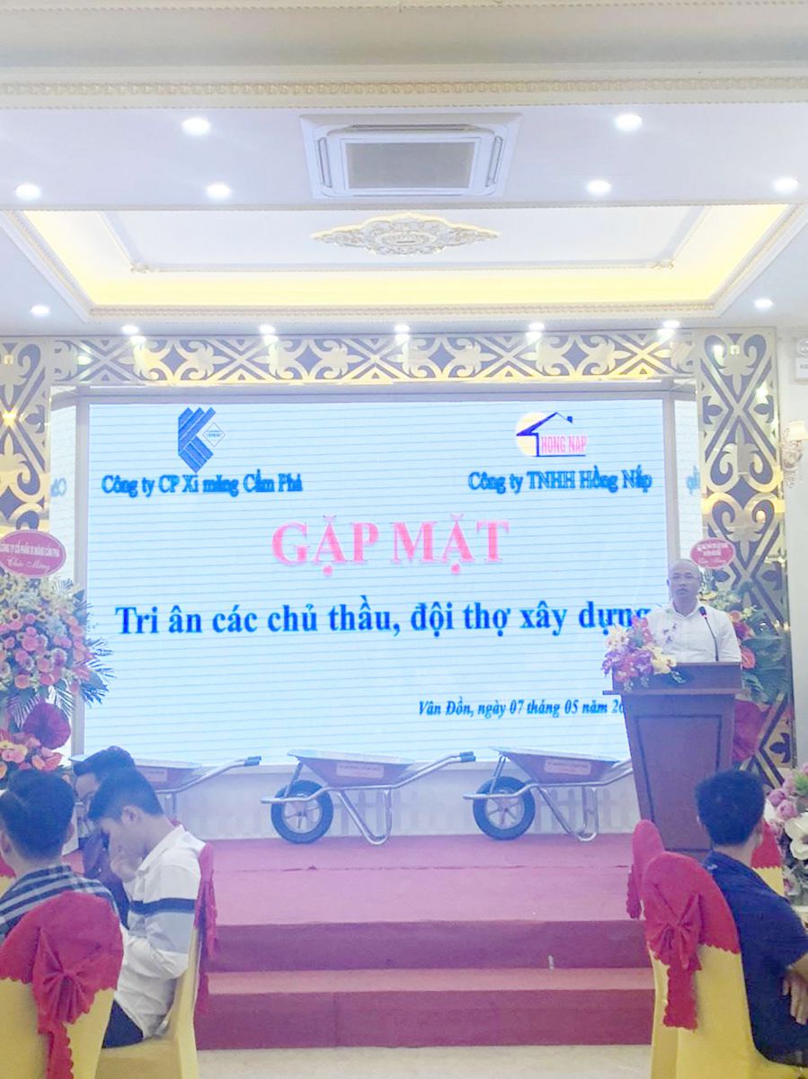 Tại hội nghị, ông Trần Quang Hưng – Tổng Giám đốc Công ty Cổ phần Xi măng Cẩm Phả đã gửi lời cảm ơn chân tình tới các đại lý, nhà phân phối, chủ thầu xây dựng, tại khu vực Vân Đồn – Quảng Ninh. Những khách hàng này đã và đang cùng với công ty đưa thương hiệu Xi măng Cẩm Phả đến với người tiêu dùng địa phương một cách rộng rãi, hiệu quả nhất. Đồng thời, ông cũng chia sẻ những khó khăn của nhà phân phối, hệ thống đại lý, kinh doanh Xi măng Cẩm Phả trong bối cảnh cạnh tranh gay gắt giữa các nhãn hiệu xi măng trên thị trường và nhu cầu tiêu thụ thấp. Tổng giám đốc Trần Quang Hưng cho rằng, mối quan hệ giữa Xi măng Cẩm Phả và nhà phân phối cũng như các đại lý bán lẻ không chỉ là quan hệ giữa nhà sản xuất, kênh phân phối mà cao hơn còn là sự gắn kết như những thành viên trong đại gia đình Xi măng Cẩm Phả. Bởi vậy, Công ty Cổ phần Xi măng Cẩm Phả luôn luôn kề vai sát cánh cùng khách hàng, hỗ trợ, tất cả vì khách hàng chỉ mới mục tiêu duy nhất hợp tác cùng phát triển đưa thương hiệu Xi măng Cẩm Phả ngày một lớn mạnh.
