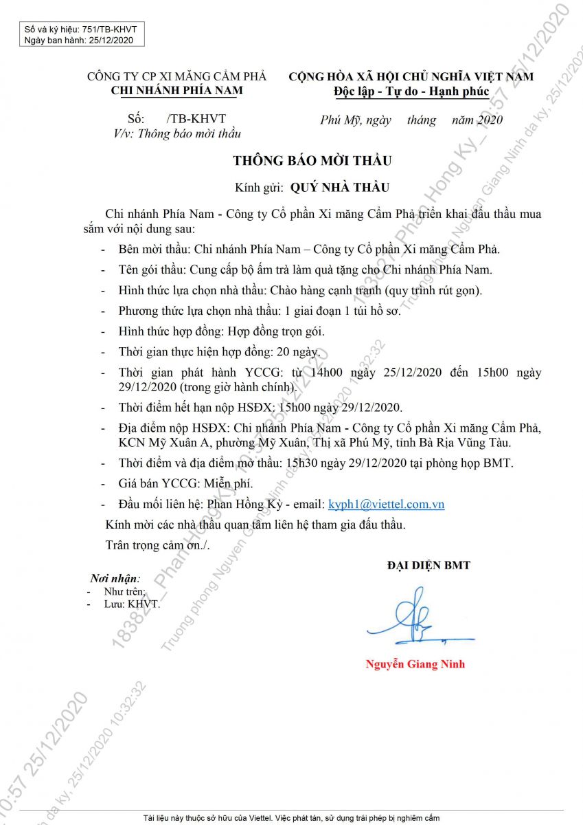Thông báo mời tham gia đề xuất cung cấp bộ ấm trà làm quà tặng cho Chi nhánh Phía Nam