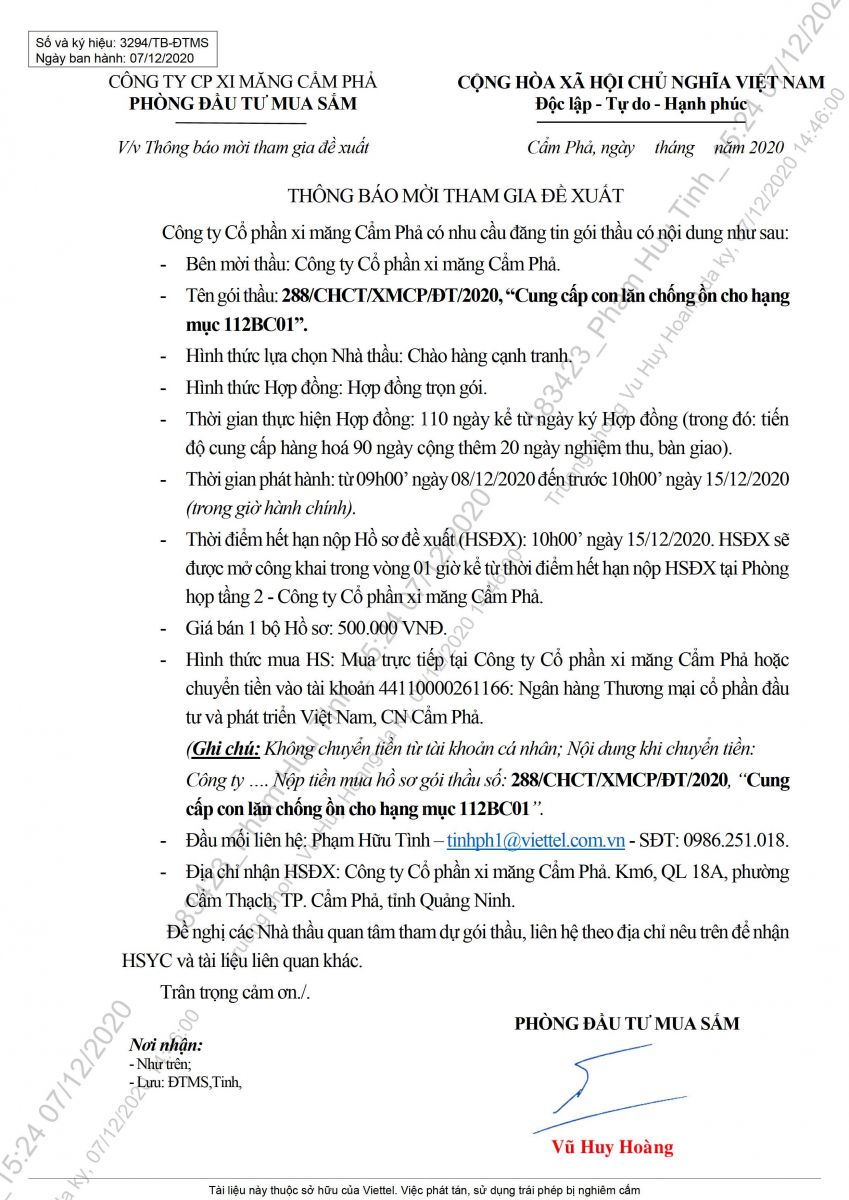 Thông báo mời tham gia đề xuất cung cấp con lăn chống ồn cho hạng mục 112BC01