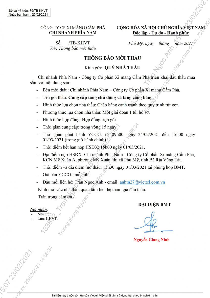 Thông báo mời tham gia đề xuất cung cấp tang chủ động và tang căng bằng
