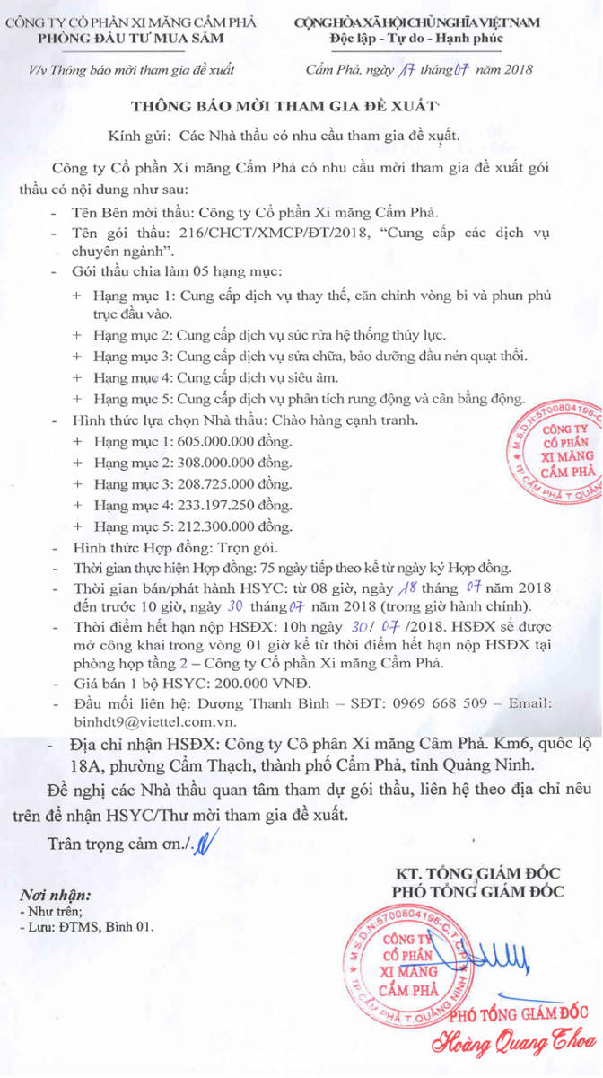 Thông báo mời tham gia đề xuất gói thầu cung cấp các dịch vụ chuyên ngành