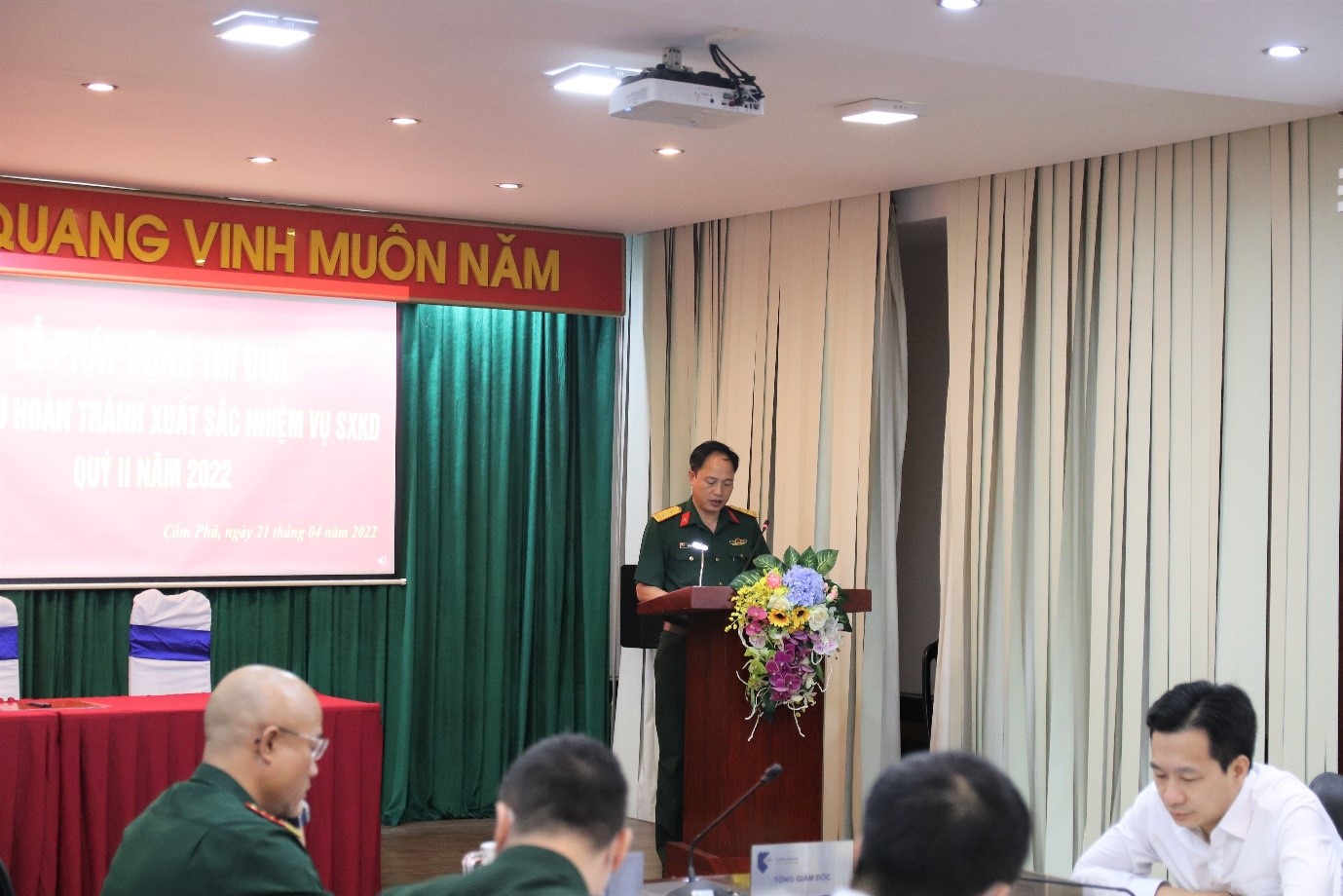 Tại buổi lễ phát động, thay mặt Ban Tổng Giám đốc Công ty, đồng chí Trung tá Ngô Thế Hưng – Đảng ủy viên, Phó Tổng Giám đốc Công ty đã báo cáo nội dung, chỉ tiêu thi đua quý II năm 2022. Trong đó có các nội dung trọng tâm như: Tiêu thụ Xi măng sản lượng 268.270 tấn, Clinker 160.000 tấn; Đảm bảo quá trình hoạt động của hệ thống thiết bị được duy trì thường xuyên, an toàn, ổn định, có chất lượng, đạt hiệu quả cao nhất; Kiểm soát chặt chẽ việc chấp hành kỷ luật lao động và an toàn lao động tại cơ quan, đơn vị; Hoàn thành công tác tổ chức Đại hội Đoàn Thanh niên; Phối hợp cùng Văn phòng Tập đoàn tổ chức Hội thao phòng cháy chữa cháy toàn Tập đoàn; Tăng cường ứng dụng CNTT vào các lĩnh vực (tập trung cho quản lý, hỗ trợ bán hàng)…