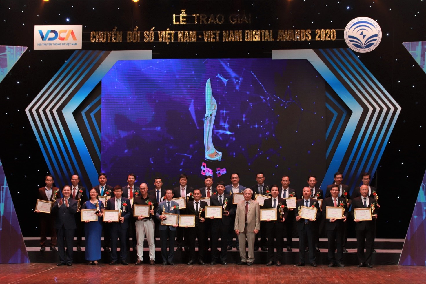 Vào lúc 14h00 ngày 18/10/2020, tại Nhà hát Âu Cơ, Hà Nội đã diễn ra “Lễ trao giải thưởng chuyển đổi số Việt Nam - Vietnam Digital Awards 2020”. Sau 4 tháng phát động, Ban tổ chức đã nhận được 232 hồ sơ dự thi ở tất cả các thành phần theo cơ cấu giải thưởng. Qua quá trình thẩm định sơ khảo và chung khảo công tâm, khách quan, Ban tổ chức đã lựa chọn ra những giải pháp về công nghệ số xuất sắc nhất thuộc 27 doanh nghiệp, Tập đoàn công nghệ và 31 đơn vị là cơ quan Nhà nước, doanh nghiệp trong việc thực hiện chủ trương và các giải pháp về chuyển đổi số tiêu biểu để trao giải thưởng Chuyển đổi số Việt Nam 2020.