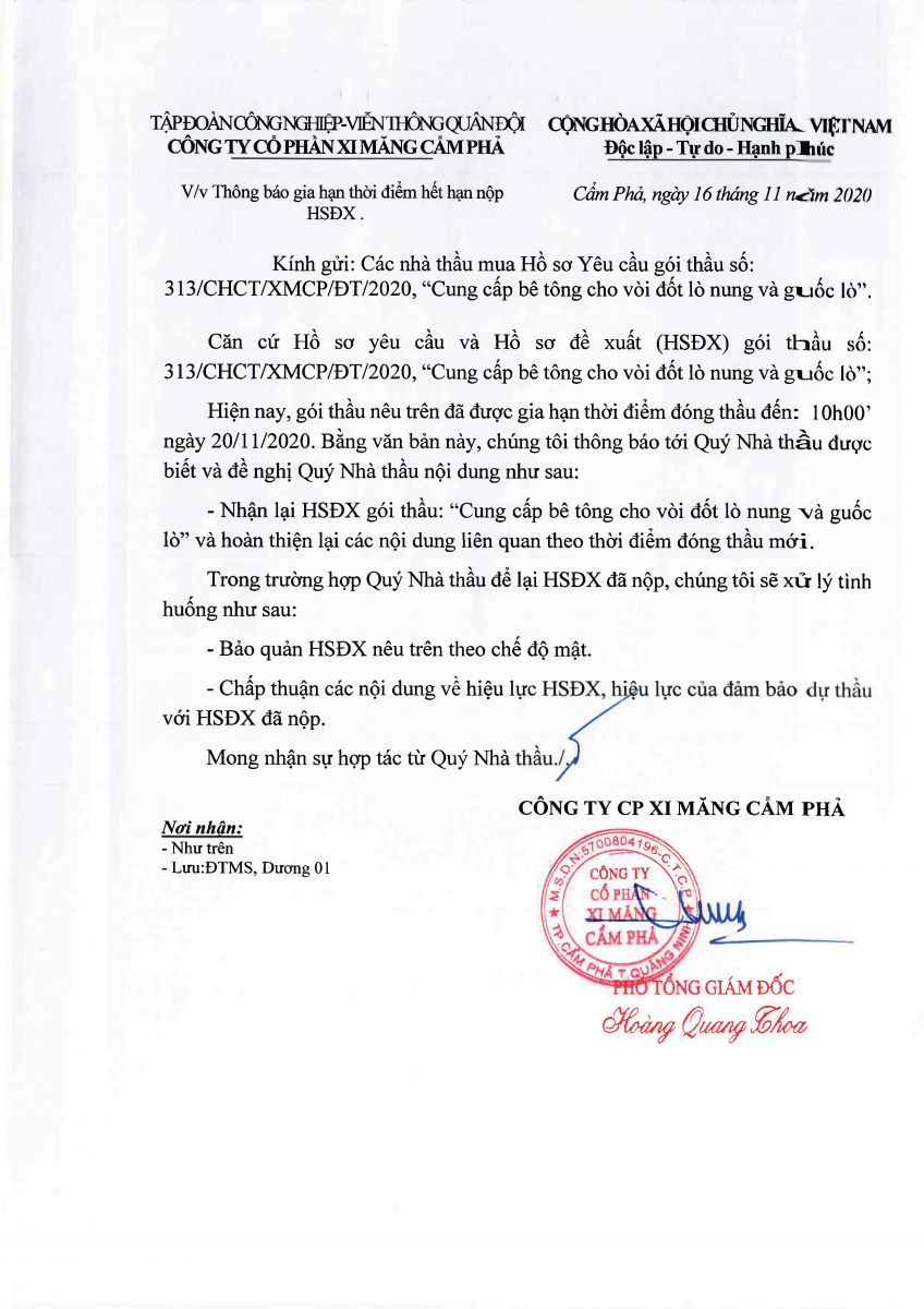 Thông báo gia hạn thời điểm hết hạn nộp hồ sơ đề xuất