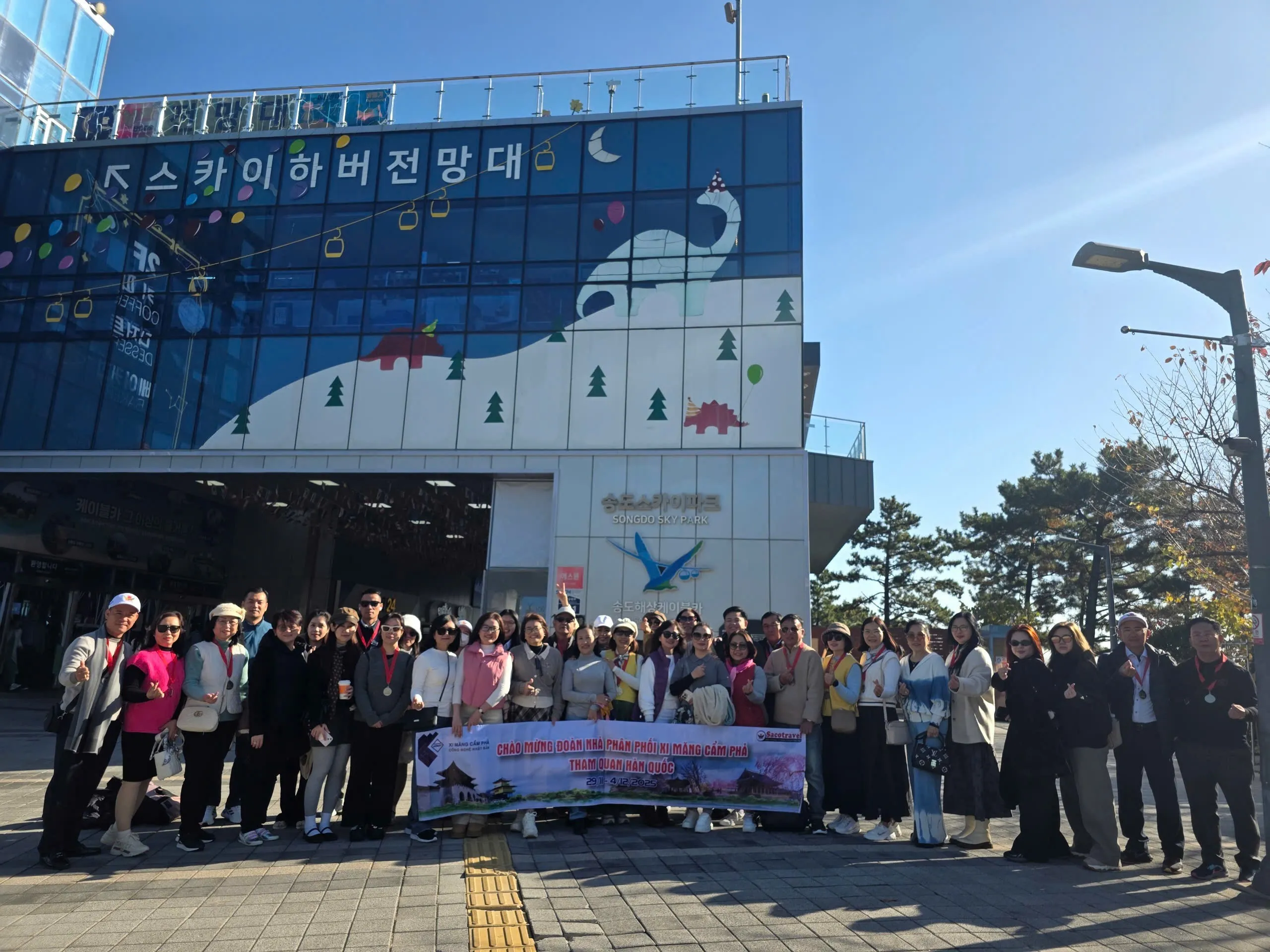 Đoàn tham quan chụp ảnh lưu niệm tại Songdo Sky Park và Wine & Digital Cave